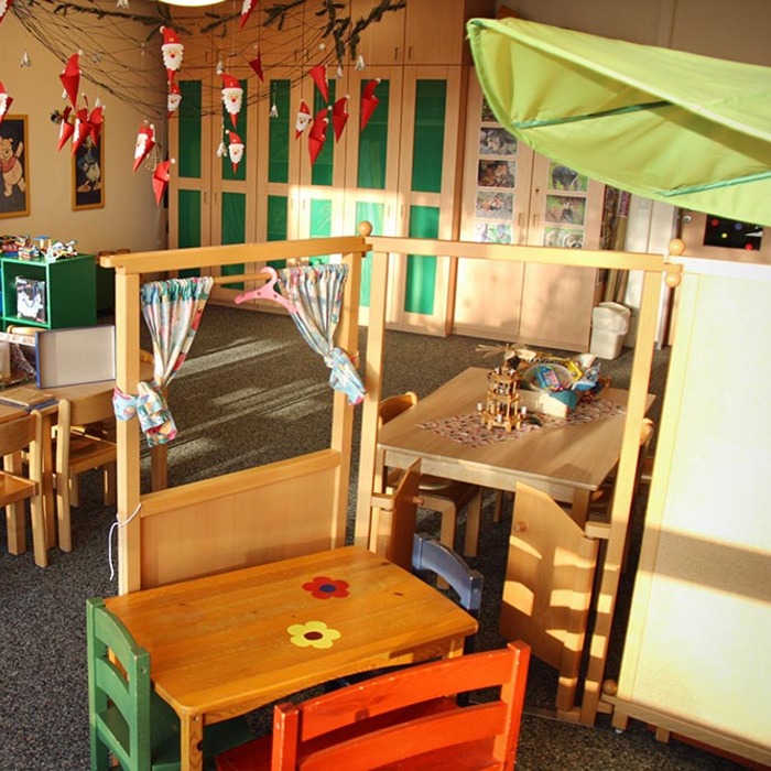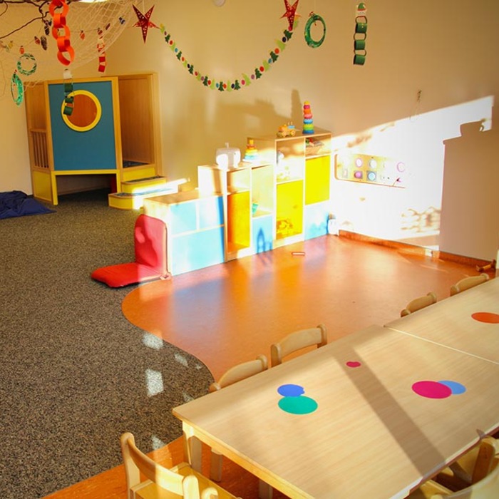 Dank großer und heller Räume, bieten wir den Kindern viel Platz zum Spielen, Lernen und Entdecken. Jede Kindergruppe verfügt dabei über einen eigenen Gruppenraum von 48m². Unsere Krippengruppen nutzen zudem in gleicher Größe jeweils noch einen anliegenden Schlafraum.