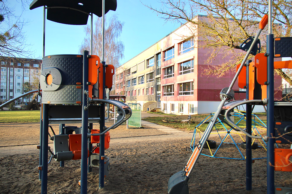 In unserer dreistöckigen Einrichtung betreuen wir Kinder im Alter von 0,3 bis 10 Jahren. Wir besitzen derzeit eine Betriebserlaubnis von 42 Krippenplätzen, 120 Kindergartenplätzen und 120 Hortplätzen.