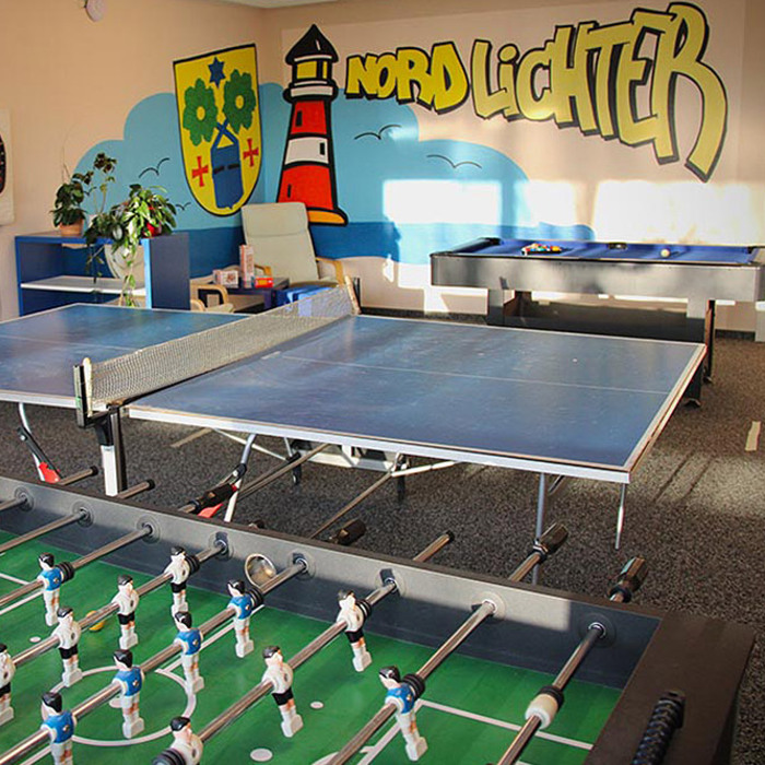 Um den individuellen Interessen der Kinder gerecht zu werden, besitzen wir des weiteren einen Bewegungsraum, ein Märchenzimmer, einen Kreativraum, eine Kinderküche, eine Kinderwerkstatt, sowie einen Kickerraum mit vielen Spieltischen.