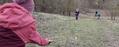 Fingerfertigkeit und das nötige Feingefühl war auch beim Spiel "Eier pellen auf Zeit" gefragt. Um fürs Osterfrühstück ausreichend Eiersalat zu haben, wurde kurzerhand ein "Wettpellen" ausgerufen.